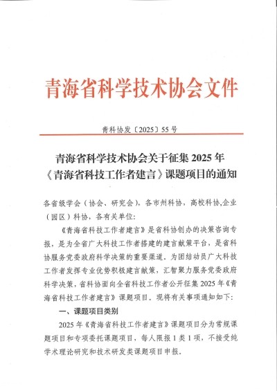 附件:1.《青海省科技工作者建言》常规课题项目申报书.docx 2.《青海省科技工作者建言》专项委托课题项目申报书.doc...